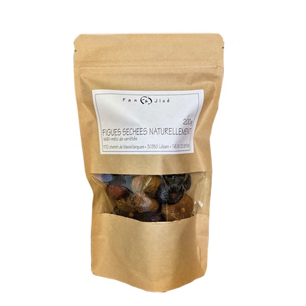 Figues sèches en mélange de variétés aux saveurs, couleurs et textures différentes. Séchées naturellement sans aucun ajout ni traitement ionisant.