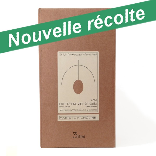 - fontaine à huile 3 litres, en carton kraft avec poche rétractable et robinet de service pour une conservation idéale à l'abri de l'air